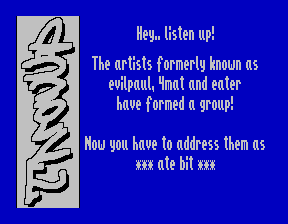 ![]() Intro for the ZX Spectrum 128 1st place at Sundown 2005 oldskool intro competition Released 10th September 2005 [Download] [Pouet] |